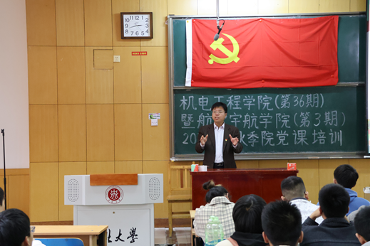 第五讲由航空宇航学院党委书记罗建国以“对党忠诚、做合格党员”为主题展开讲解,他从历史角度看对党忠诚、如何做到对党忠诚和新时代共产党员面临新考验等方面进行了阐述,勉励大家始终把这32个字记在心中:信念坚定、对党忠诚、坚持原则、严守纪律、牢记宗旨、心系群众、品德高尚、作用突出。新时代共产党员面临着新考验,要求同学们做到讲政治,有信念;讲规矩,有纪律;讲道德,有品行;讲奉献,有作为。