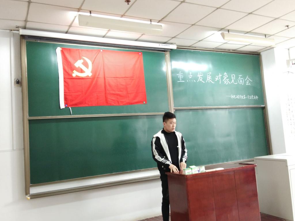 接下来,庙智超同志组织召开了重点发展对象见面会。6名重点发展对象依次上台发言,并向大家介绍了各自从入学到现在所取得的成绩以及思想上取得的进步等。支部副书记庙智超同志希望他们的培养联系人及入党介绍人能够协助党组织,做好对6名重点发展对象的教育、培养和考察工作。