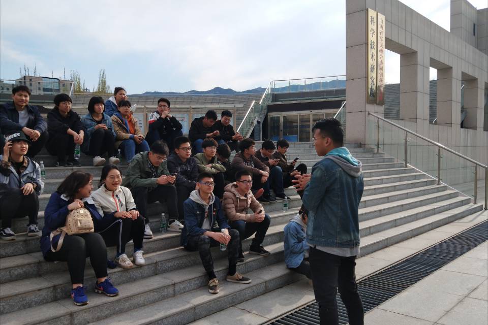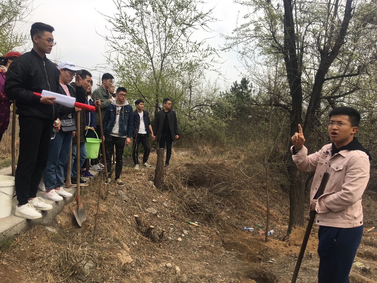 植树结束后,大家集体合影留念,并来到科学楼台阶上交流讨论,副书记卜彦鹏同志对本次活动做出总结,对表现良好的同学进行表扬,并指出活动不足之处,提出改进意见,至此活动圆满结束。