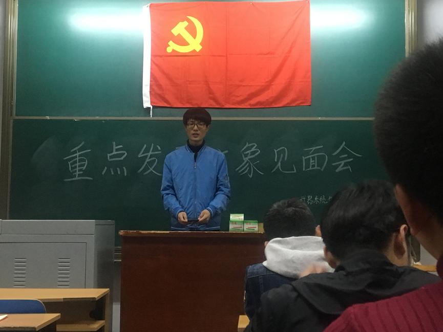 学生第三党支部在11107H教室召开了重点发展对象见面会,本次会议由学生第三党支部组织委员孟浩东同志主持,三支部全体正式党员、预备党员及7名重点发展对象参加了此次会议。