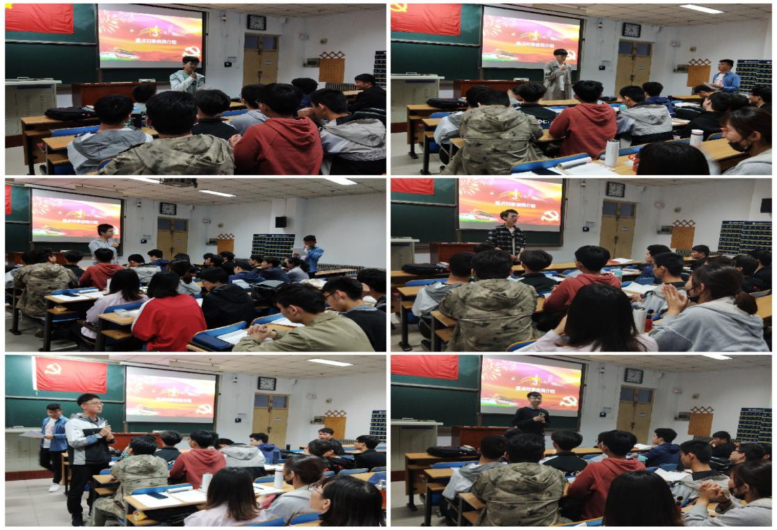 武器发射工程党支部,即学生第四党支部的决定,并简单介绍了支部情况,现支部共有19名成员,其中正式党员9名,预备党员10名。随后,四支部组织委员,纪检委员,宣传委员依次上台进行了自我介绍并说明各自职责。