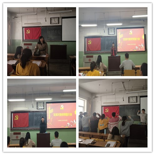 首先,由7位重点发展对象依次回顾了发展期间的表现,介绍了自己的近期情况,表达了自己对党的热爱和不懈的追求以及加入中国共产党的诚恳愿望,同时也指出自己的缺点和不足。再由培养人和介绍人对其进行客观评价。会议以投票的形式进行了表决,会议一致同意李嘉骏、张程皓、史诗、赵荣珍、梁媛、官上伟、马希7名同志如期转为预备党员。随后,由支部委员王海同志带领其余7名同志在党旗下庄重宣誓。