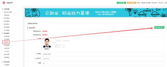 3、进入后点击推荐表,按照顺序填写内容即可,填写完成点击预览,显示无误后即可提交。