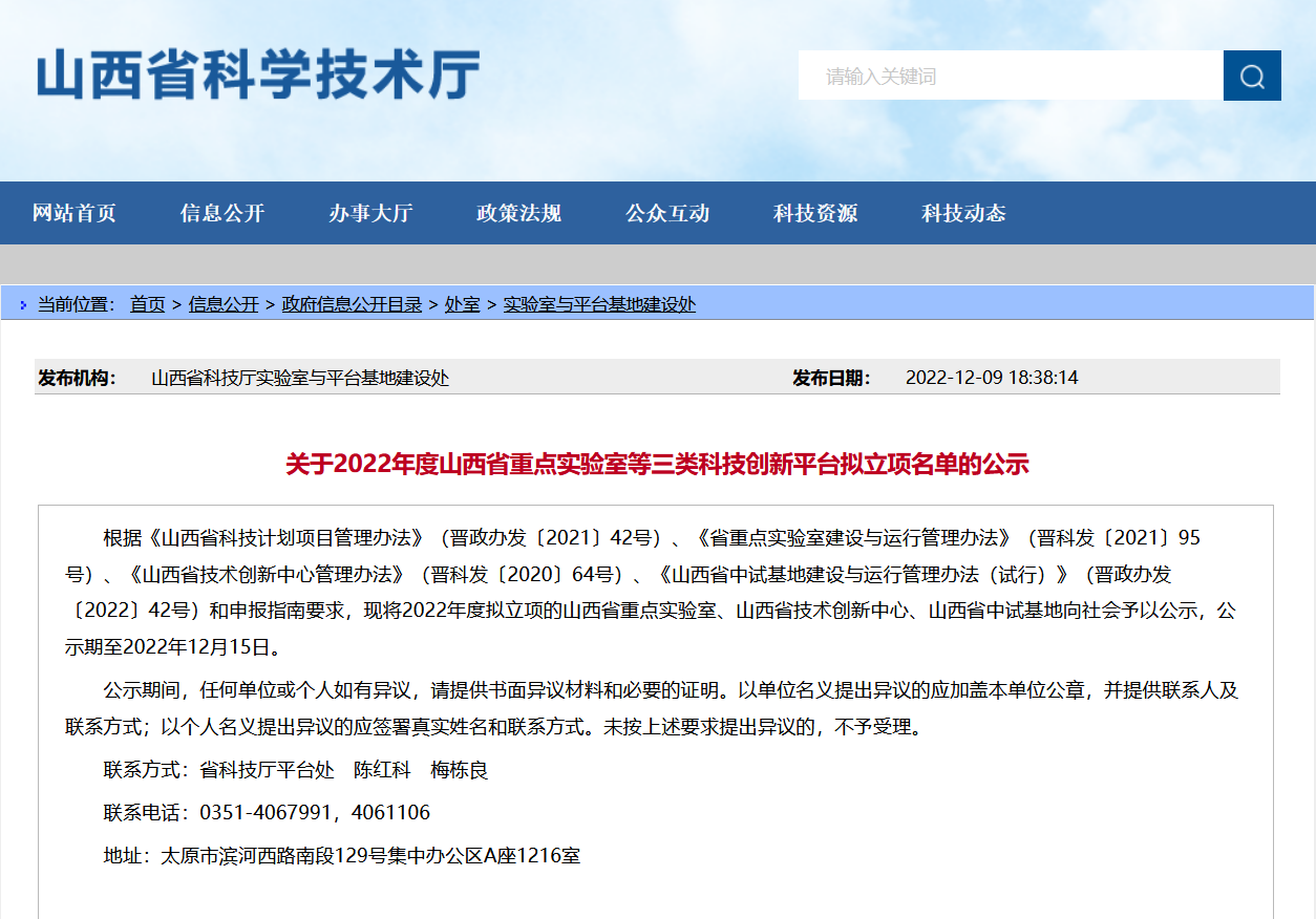 根据省科技厅“关于2022年度山西省重点实验室等三类科技创新平台拟立项名单的公示”,69书吧