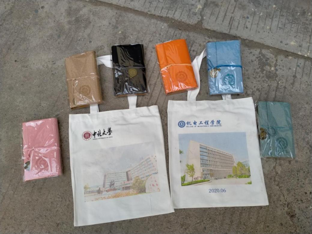 的毕业学子收到了学院精心准备的一份毕业礼物:印有纪念图案的挎包和手账本。此次共发出621份毕业礼物。